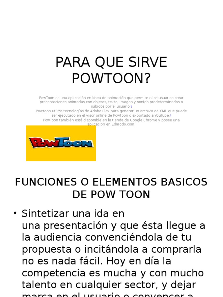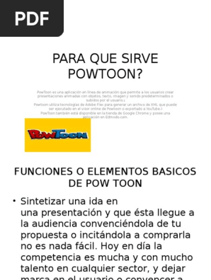 Para que sirve powtoon. 3 PowToon tambin est disponible en. PowToon es una nueva herramienta que puede ser muy útil para aquellos profesores estudiantes que tengan que hacer exposiciones y ponentes en general que quieran crear un vídeo didáctico en poco tiempo que de buenos resultados y además de forma muy fácil. Powtoon ofrece a los usuarios la capacidad de crear animaciones al permitirles manipular objetos e imágenes.